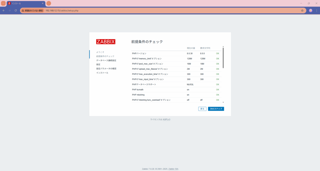 設定バックアップ# cp -p /etc/php-fpm.d/zabbix.conf /etc/php-fpm.d/zabbix.conf.BK